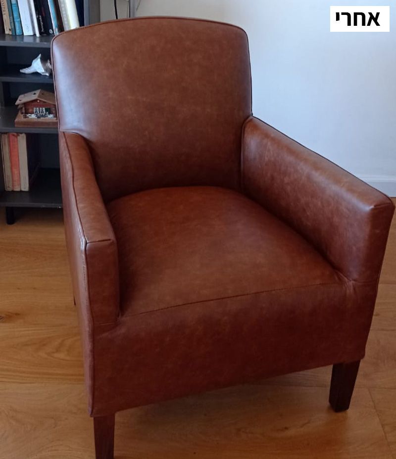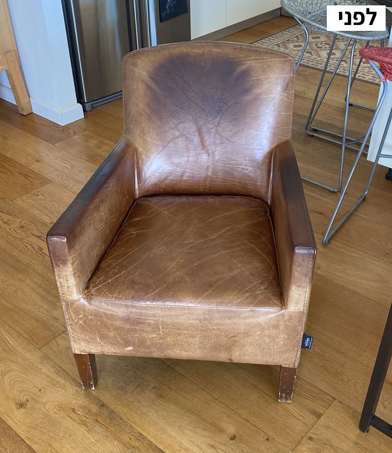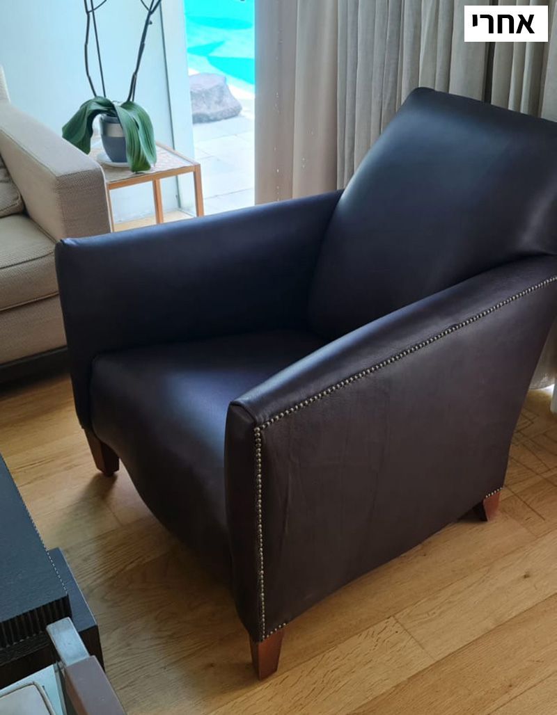 הכורסה עוברת פירוק מעטה עליון של הבד/עור. כמו כן, הסרת ספוגים וכו'.