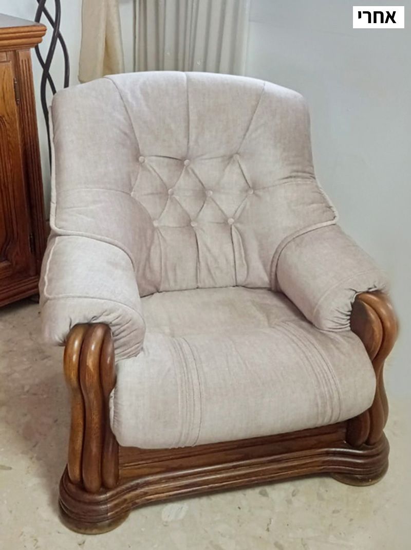 גוף הכורסה העשוי עץ לרוב, עובר בדיקה מקיפה, חיזוק מבנה וצביעת רגליים במידת הצורך.